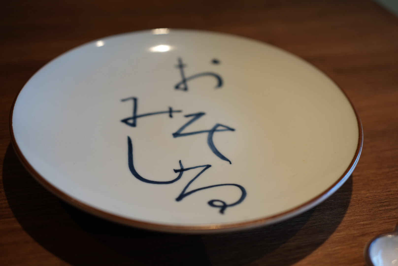 手描きの「おみそしる」の文字が目立つ印象的なお皿です。